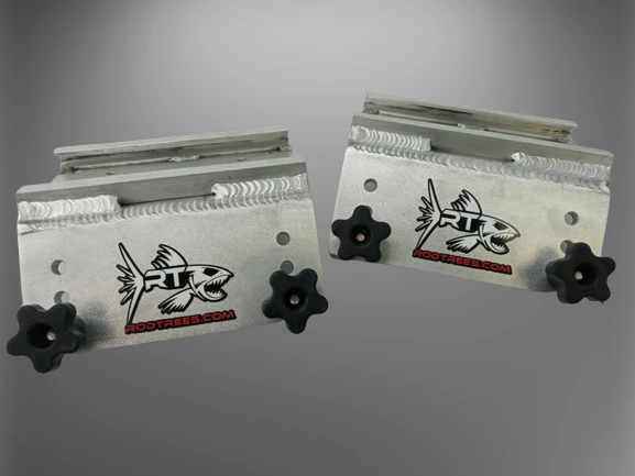Our Track Top Mounting Brackets are similar to our standard mounting brackets but have tracking welded directly to the top of the bracket. Easily slide your rod holder, rod tree, or other optional equipment into the top of the track. Built of a solid 3.5″ X 2.5″ X 6″ NON-bent, CNC two-piece custom design that is tig welded with 3/8″ 6061 aluminum, adjustable 3 mounting positions in height for optional clearance, stainless steel hardware included, and guaranteed true angle!